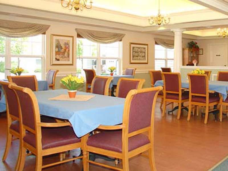 - Small dining rooms with consistent seating, which encourages familiarity and socialization. Music, centerpieces, warm scented wash towels and fresh linens enhance the dining experience.