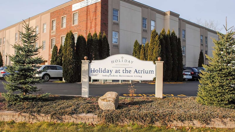 The Holiday at the Atrium retirement community offers a warm and welcoming senior living experience in Glenville, NY. The community is surrounded by trees and located within walking distance of The Waters Edge Lighthouse, a 19th-century farmhouse that was converted into a lovely restaurant