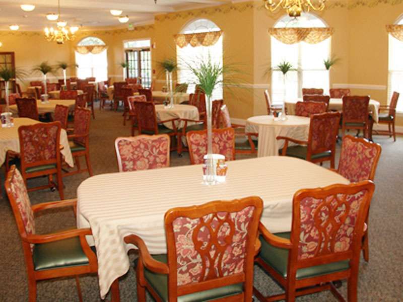 - Small dining rooms with consistent seating, which encourages familiarity and socialization. Music, centerpieces, warm scented wash towels and fresh linens enhance the dining experience.