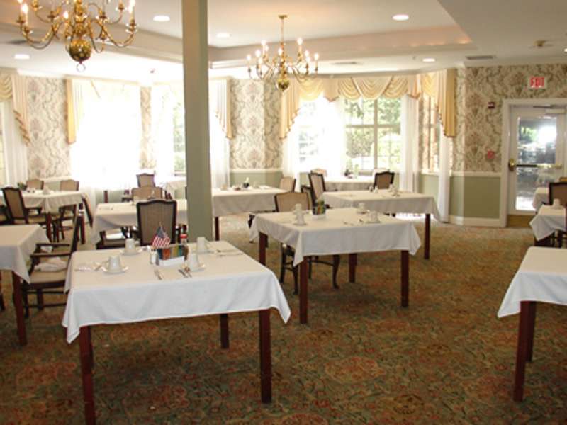- Small dining rooms with consistent seating, which encourages familiarity and socialization. Music, centerpieces, warm scented wash towels and fresh linens enhance the dining experience.