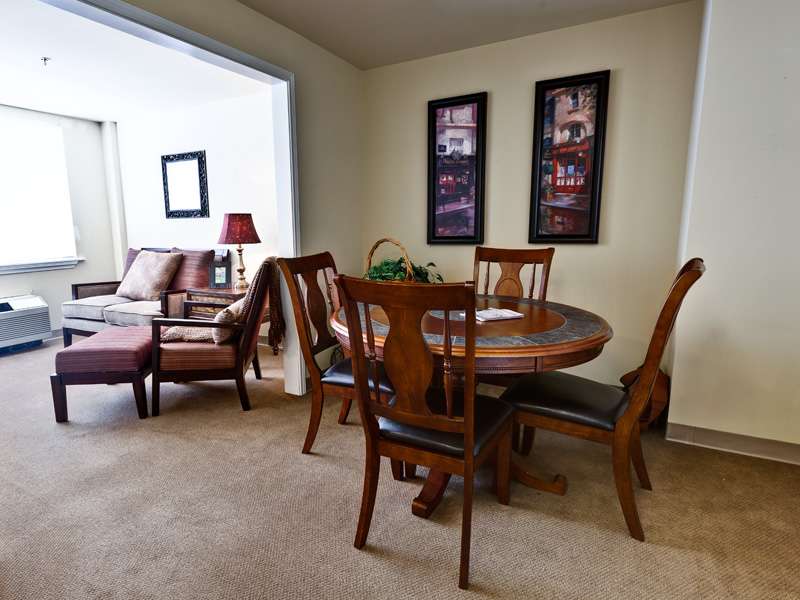 - Small dining rooms with consistent seating, which encourages familiarity and socialization. Music, centerpieces, warm scented wash towels and fresh linens enhance the dining experience.