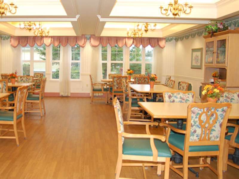 • Small dining rooms with consistent seating, which encourages familiarity and socialization. Music, centerpieces, warm scented wash towels and fresh linens enhance the dining experience.